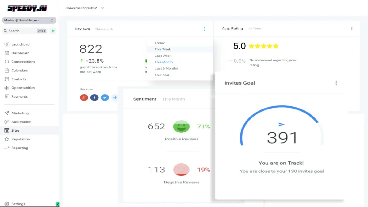 Set up and send automatic review requests via SMS or email to clients. Clicking on the links in these messages will take them straight to your Google Review Page. Select the apt time to send these review requests to ensure your clients have enough time to engage with your business. Link your Google My Business Page to your Speedy.ai account to monitor the reviews, reply to them, and display them on your site.